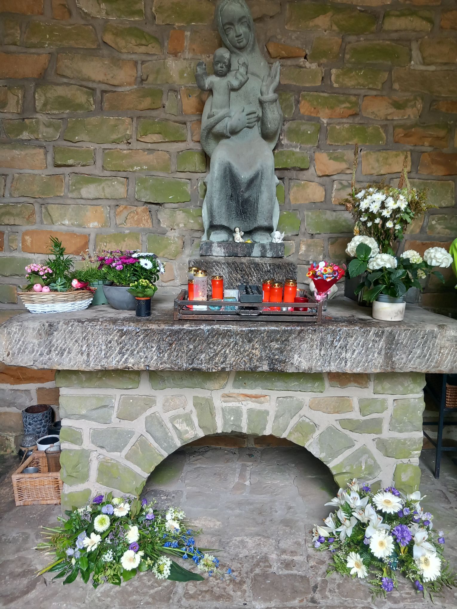 Moeder Maria staat symbool voor moeder aarde. Het was een gebruik om vaak moeder Maria een gekerstenigde variant te geven voor plekken waar er een godin werd aanbeden. Dit zie je ook bijvoorbeeld terug in beeldjes van de Egyptische Isis waar Horus aan de borst drinkt bij haar. Dit zelfde model , “alleen dan zit Jezus niet te drinken aan de borst”, zien we terug bij Maria beeldjes. Ook is er een tekst van de Essenen, dit waren Joodse mystici rond de jaartelling die een gebed hadden naar moeder aarde. Dit gebed is helaas nooit opgenomen in de Bijbel. Het is de tegenhanger van “Onze vader”, genaamd ” Onze moeder” Het gebed gaat als volgt: